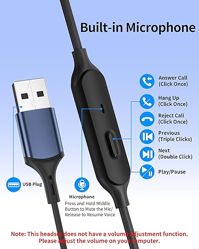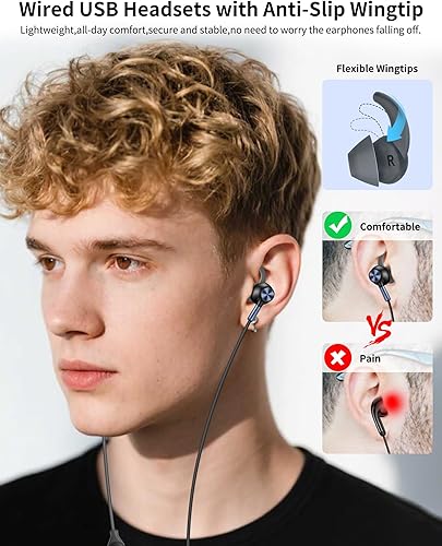 Comment on "USB Earbuds with Microphone for PC Laptop,Wired USB A Headphones with Mic& Earfins Hook for Computer Office Work,7.5ft Noise Canceling Stereo Computer Headset for Dell HP Chromebook Game School,Black(Black blue,USB-A Plug)"