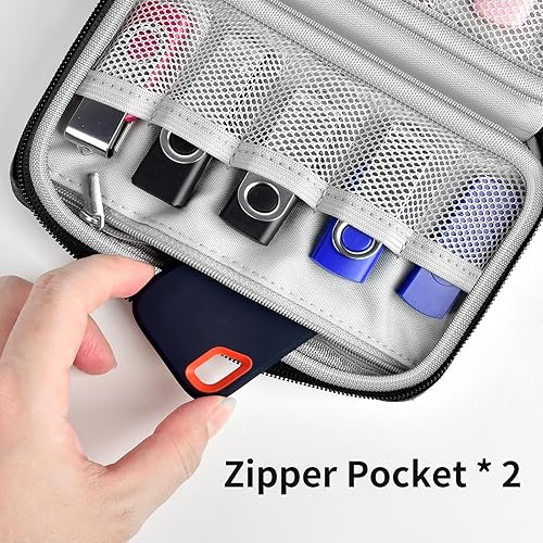 Usb Drive Box With Scientific Partitioning: Adopting a three-layer design with reasonable partitioning, usb jump drive storage case is equipped with mesh pockets of different sizes and zippered side pockets. Different mesh pockets inside hard drive pouch are suitable for devices of different sizes, making access quick and convenient, and eliminating the trouble of rummaging.
