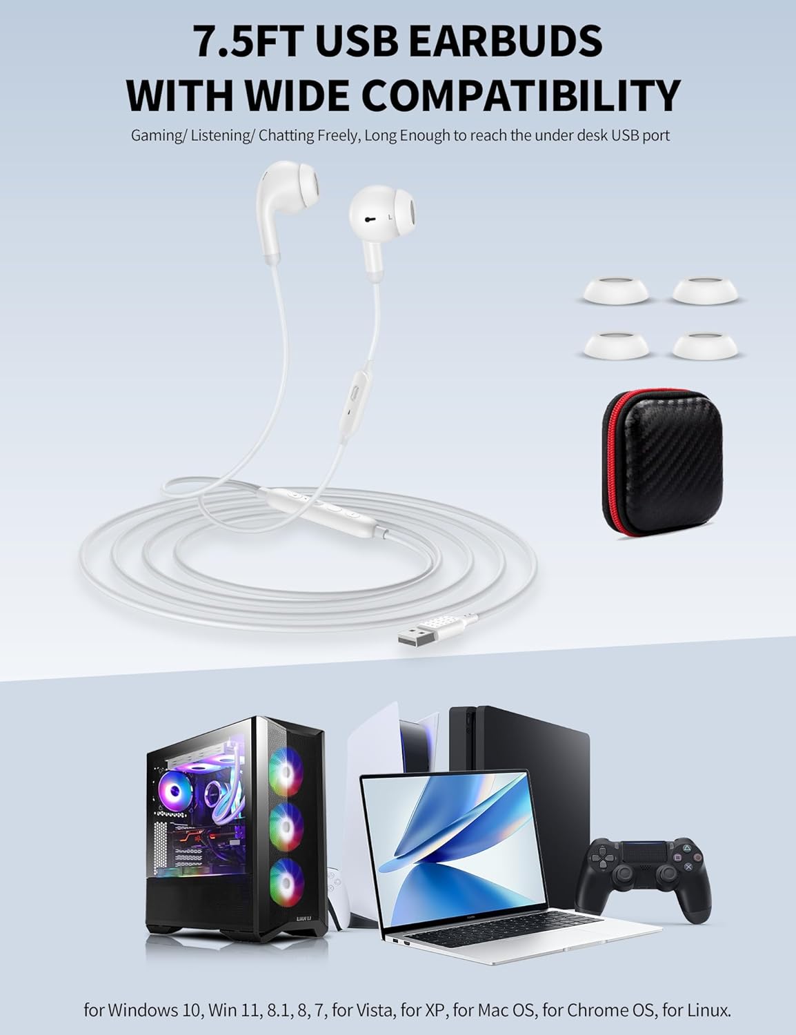 Hifi Stereo USB Earphones: Adopt Newest Chip And Powerful Dynamic Driver, Delivers 3D Stereo Sound, Provides Lossless Sound To Your Ear, Ensure Efficiency And Immersive Experience When Studying, Conference, Calling, Listening, Video Watching, Gaming, Etc.