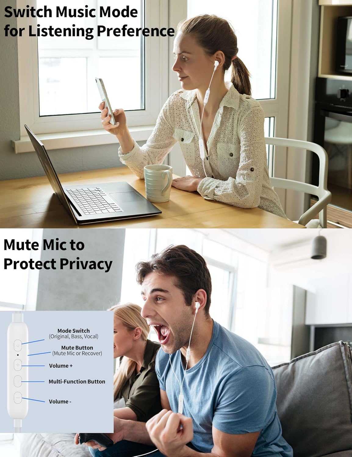 Mute-able HD Mic and Controls: Built-in microphone allows you to make clear phone calls, if you don’t want the other side to hear you when calling or conferencing, which is necessary at times, simply click the side button to mute and click again to recover; the earbuds also supports volume adjustment, play pause music, answer end reject call, skip songs by clicking the volume button and multifunctional button, instruction please refer to image