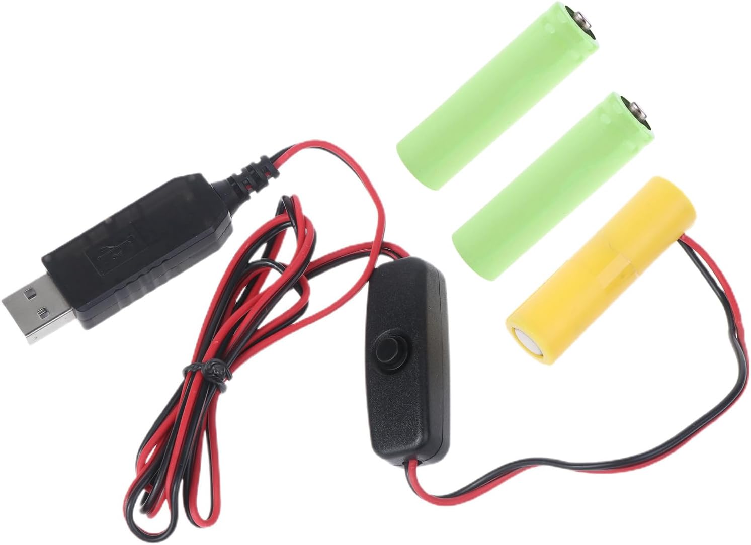 • USB to 4.5V AA battery eliminating cable with switches, replace 3pcs AA LR6 battery power supply cord, cable length about 200cm/36.56ft.