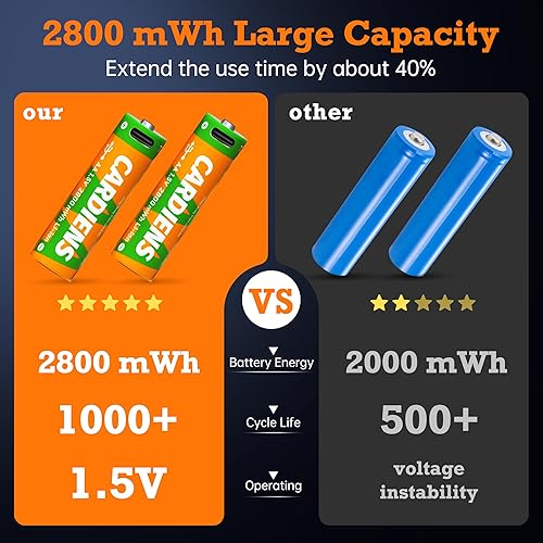 【Recharged at least 1000+ times】 Multiple charges barely lose capacity, in the long run they will save you money on battery purchases and also reduce your environmental impact throwing away disposables