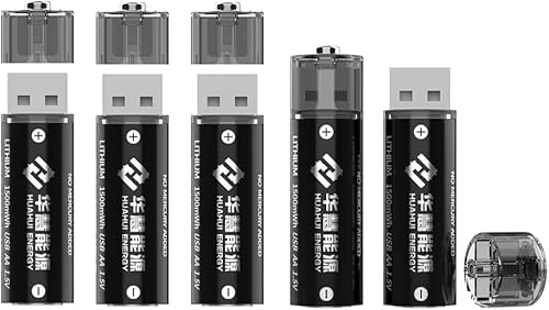 USB Rechargeable AA Lithium Batteries, 1.5V 1500mAh, Set of 4, Built-in USB Charging Port, 4 Count