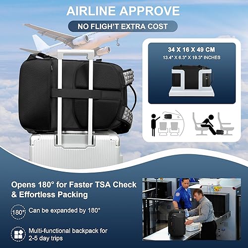 【Laptop and Tablet Storage Made Easy】This airpack backpack features two padded sleeves—one for laptops up to 19" and one for tablets—keeping both devices safe and secure. Multiple pockets hold chargers, cables, and accessories in place, while the TSA-friendly 180° opening speeds up airport checks. A smart investment for anyone who travels with tech.