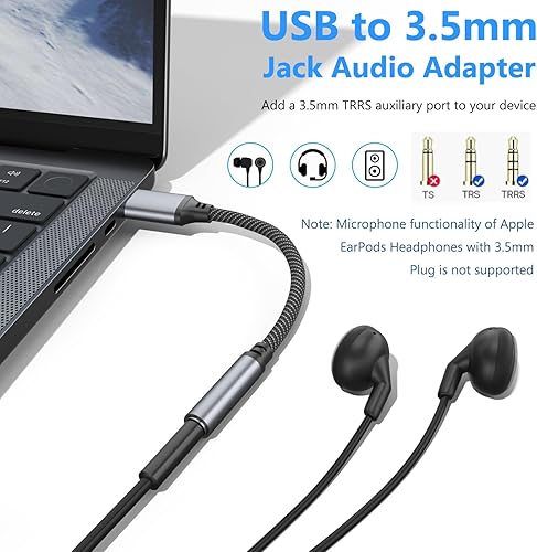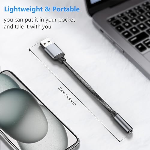 Wide Compatibility: Works with most USB-enabled devices (laptops, desktops, tablets) to connect 3.5mm audio gear—headphones, speakers, or microphones. No extra setup for seamless audio use.