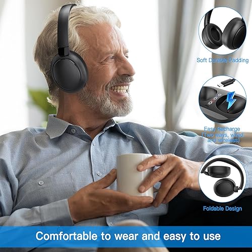 Versatile Wireless Connectivity: Experience seamless sound with our wireless TV headphone, supporting wireless 2.4G and Bluetooth 5.3. Enjoy stable connections with TV, phones, or computers to enhance entertainment flexibility.