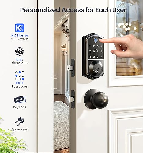 7-in-1 Smart Access: Unlock via fingerprint (Swedish FPC tech), App, authorized access, RFID card, code, code sharing, or mechanical key for versatile use; Includes 5 locking methods: Auto lock+ Fingerprint + Any Key + App + Mechanical Key
