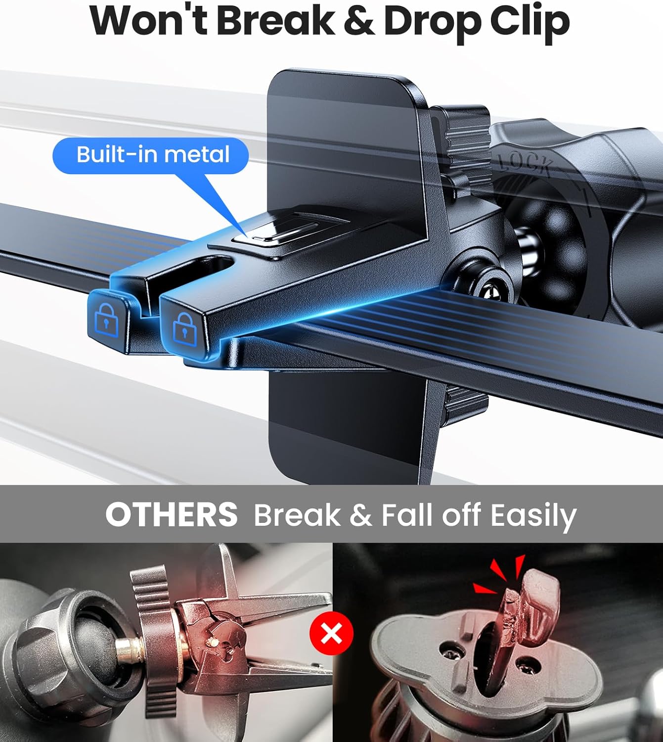 [Unmatched Durability – 10X Stronger] Built with aerospace-grade PTFE and carbon fiber, this cell phone car mount resists warping, cracking, and melting. The reinforced steel vent clip holds tight without scratching. Designed to last 10X longer than plastic mounts, it’s the toughest phone holder for your car.