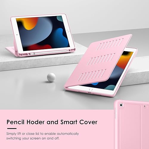 VIKESI Case for iPad 9th / 8th / 7th Generation 10.2 inch (2021/2020/2019 Released),Multiple Angles Magnetic Stand Cover,Shockproof Back,Pencil Holder,and Auto Sleep/Wake,Black(Pink)