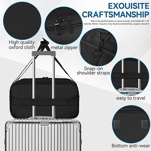 Adjustable Shoulder Strap: The record storage bag supports both portable and shoulder carry modes, allowing you to switch freely based on your needs. The ergonomically designed, adjustable shoulder straps and padded handles ensure comfortable carrying, whether for long trips or daily use