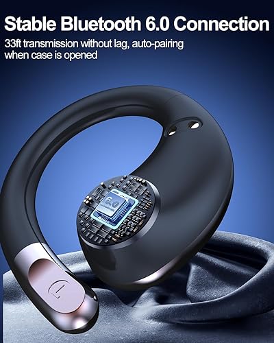 Bluetooth 6.0 & IPX6 Waterproof Protection: Latest Bluetooth 6.0 ensures ultra-fast pairing, stable 10m range, zero lag. Built-in IPX6 nano-coating makes these sports headphones sweatproof and water-resistant—ideal for intense workouts, running, or rainy conditions