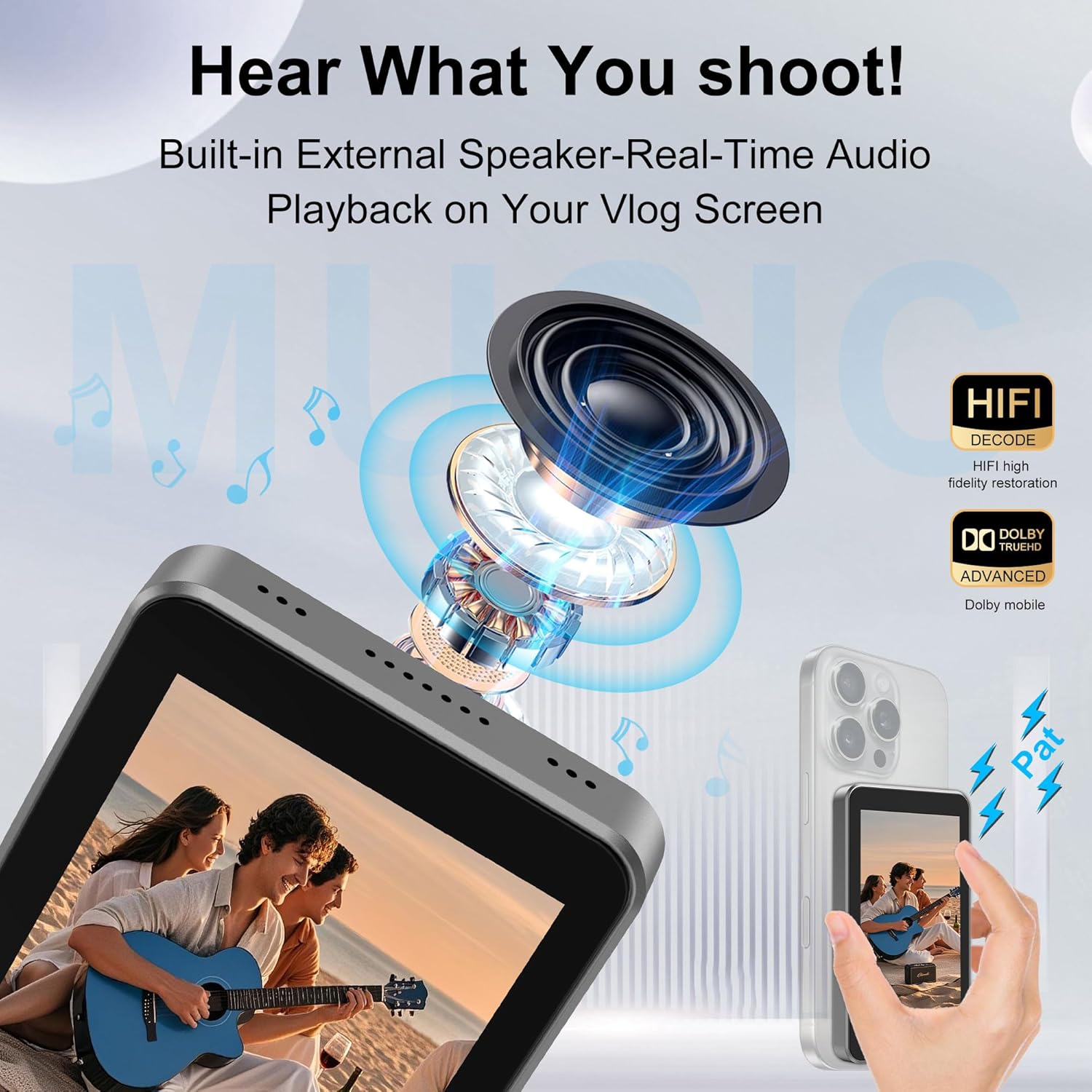 Comment on "Vlog Selfie Monitor Screen for iPhone & Android, Audio Sync Built-in Speaker, Wireless Magnetic Phone Back Camera Monitor with Remote Control for Selfie Vlog Live Stream TikTok (Grey)(Grey)"