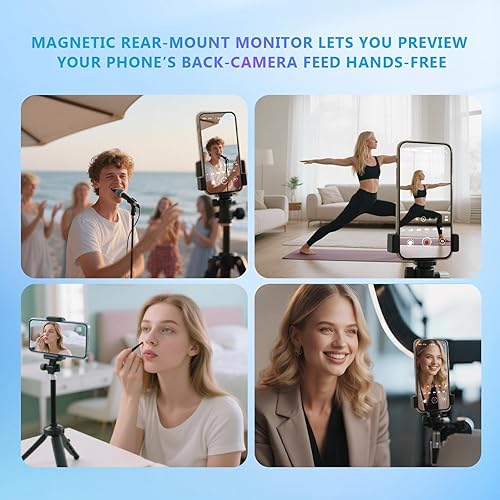 Vlog Selfie Monitor Screen for iPhone & Android – Built-in Speaker, Built-in Bluetooth Shutter Button, Wireless Back-Camera Display, 4K 60fps Magnetic Selfie Monitor