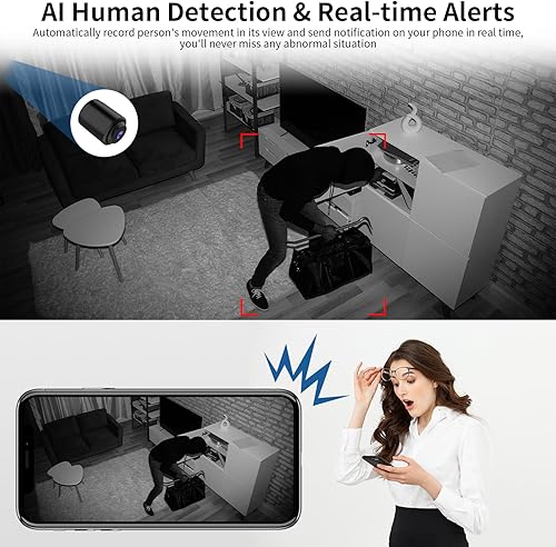 【Compact Camera & Flexible Installation】 Small and exquisite body, this home security camera will almost take no space, you can easy to install it at any indoor area, such as doorways, yards, basements, staircases, aisles, offices, garages etc