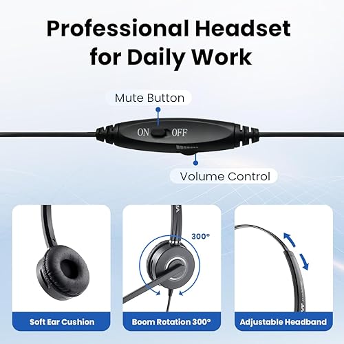 ✔ Convenient In-Line Controls: Easy-access mute switch and volume control on the cable for quick adjustments during calls—ideal for telemarketing, customer service, or conference rooms.