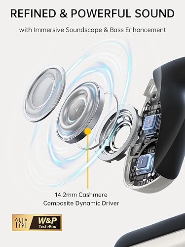[Superior Sound Quality with Rhythm-Box Technology]: Our advanced drivers, powered by Rhythm-Box technology, create an immersive listening experience with unmatched sound precision. The 14.2mm Cashmere Composite diaphragm ensures clear, dynamic audio, while processing more data for a crisp, high-definition sound that stands out from the rest.