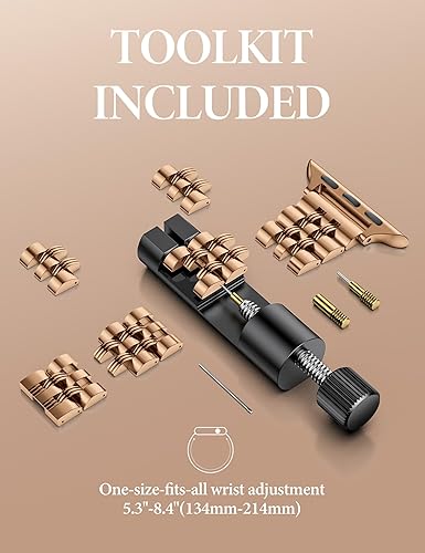 Easy to Adjust & Perfect Fit: This Apple watch se band includes a detailed instruction and a professional removal tool, making it simple to customize the length for a comfortable fit. Easily remove extra links to achieve your ideal size, perfectly tailored for wrists ranging from 5.3''-8.4''(134mm-214mm). Please follow the included instructions carefully when removing links to ensure a smooth adjustment and avoid any damage to the band.