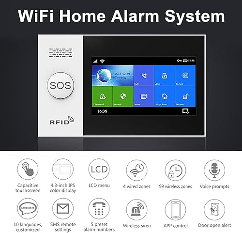 Home Alarm System: Supports 2 way intercom function, compatible with for Tuya hardware, supports up to 99 defenses zones, accurate and immediate alarm for illegal intrusion.