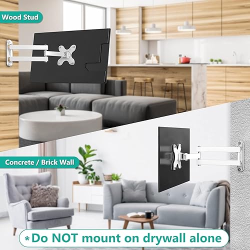 Effortless Installation: Designed for easy installation, our monitor wall mount features a 5.9"×1.6" wall plate that securely attaches to wood studs, brick, or concrete walls (Note: Drywall alone is not supported).