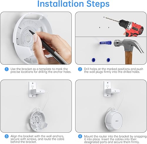 Clutter-Free Cable Management: Built-in cable routing keeps power and Ethernet cables neatly hidden. Eliminate tangled wires and keep your home or office setup organized with this Deco Mesh WiFi 7 System wall mount