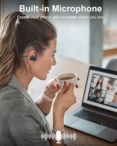 Pure HD Audio & Bluetooth 5.3 Stability :WamGra open ear bluetooth headphones experience studio-accurate sound through 14mm drivers—every bass punch and vocal nuance shines without distortion. With Bluetooth 5.3, enjoy faster pairing and zero dropouts even in crowded downtown areas. Open-ear safety design ensures awareness of traffic alerts during runs .These sweatproof wireless earbuds (IPX5) survive intense gym sessions, while 10 hour battery life powers through your day.