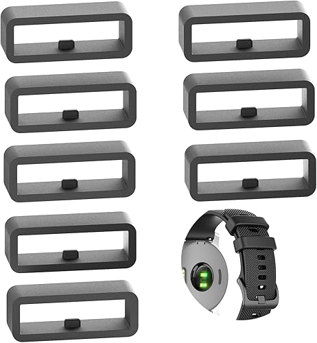 Watch Band Keeper Loops Compatible with Garmin Vivoactive 3/5/6, Forerunner 45/55/245/645, Venu Sq/Sq2, Vivomove, Fenix 5S/6S/7S Series–Strap Fastener Rings in Secure Silicone(10 colors)
