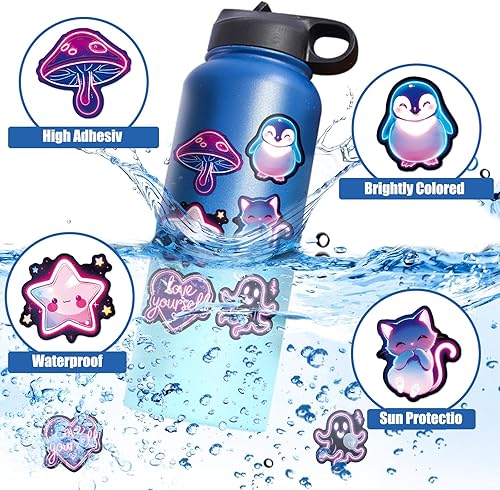 Quality Materials: Water bottle stickers stickers sizes 1.5 - 3 inches. Laptop stickers are made of waterproof vinyl. Waterproof. Bright colors. High resolution. Will not fade. High adhesion. suitable for embellishing and cover scratches etc