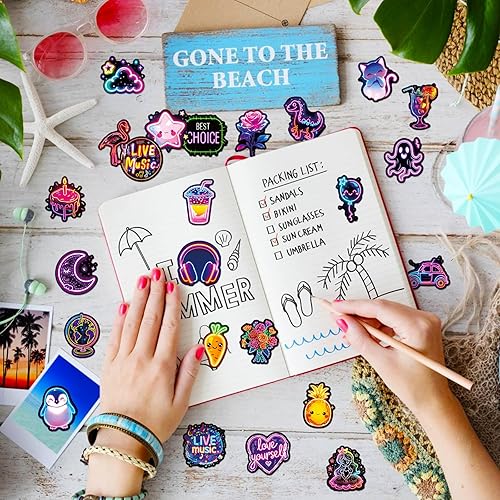 Unique Style: You will receive 300 sheets cool neon stickers. The style is cute and fun. Patterns health (As shown). No repeated. Stickers neon will add a stylish, vibrant element of personalized neon colored color to the surface of your bland items