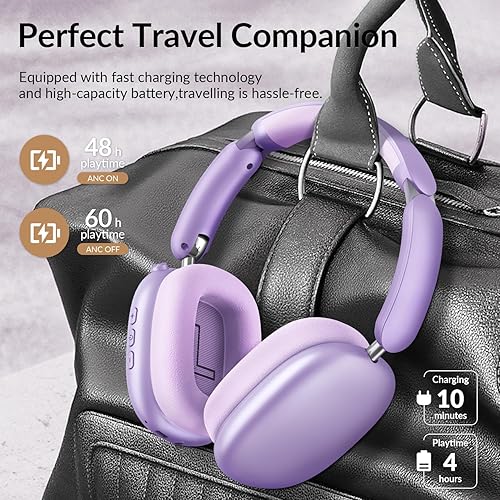 Wentronic Y02 Active Noise Cancelling Headphones,60H Battery,5 EQ Music Modes,Hi-Res Audio,Deep Bass,Foldable Wireless Over Ear Bluetooth 5.4 Headset,Breathable Leather Earpads (Purple)(Purple)