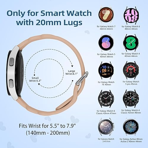 Precise Fit & Trusted Wepro Support - Perfect compatibility guaranteed! Our 20mm watch band is Designed specifically for Samsung Watch Bands for Women for Galaxy Watch 7 for Galaxy Watch 6 5 4 FE (40mm 44mm), for Galaxy Watch 5 Pro 45mm, for Galaxy Watch 6 Classic Bands(43mm 47mm),4 Classic(42mm 46mm),Watch 3 41mm,Active 2(40mm 44mm)/Active 40mm and others smartwatch with 20mm lugs. If you encounter any quality issues within 180 days, please tell us and I will help you to be a happy customer!