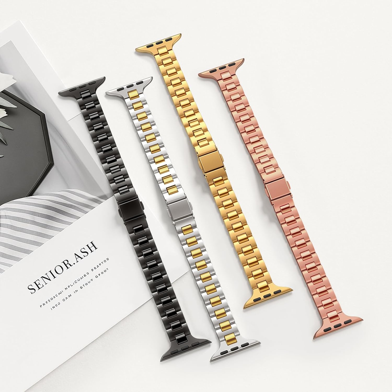 【Easy to Install and Adjust】: Featuring a new integrated design, this thin Apple Watch band is safe, sturdy, and stylish. Professional adjustment tools are included for effortless link addition or removal, ensuring a perfect, secure fit. Its seamless metal connector and high-quality band provide reliable watch protection while keeping you on-trend.