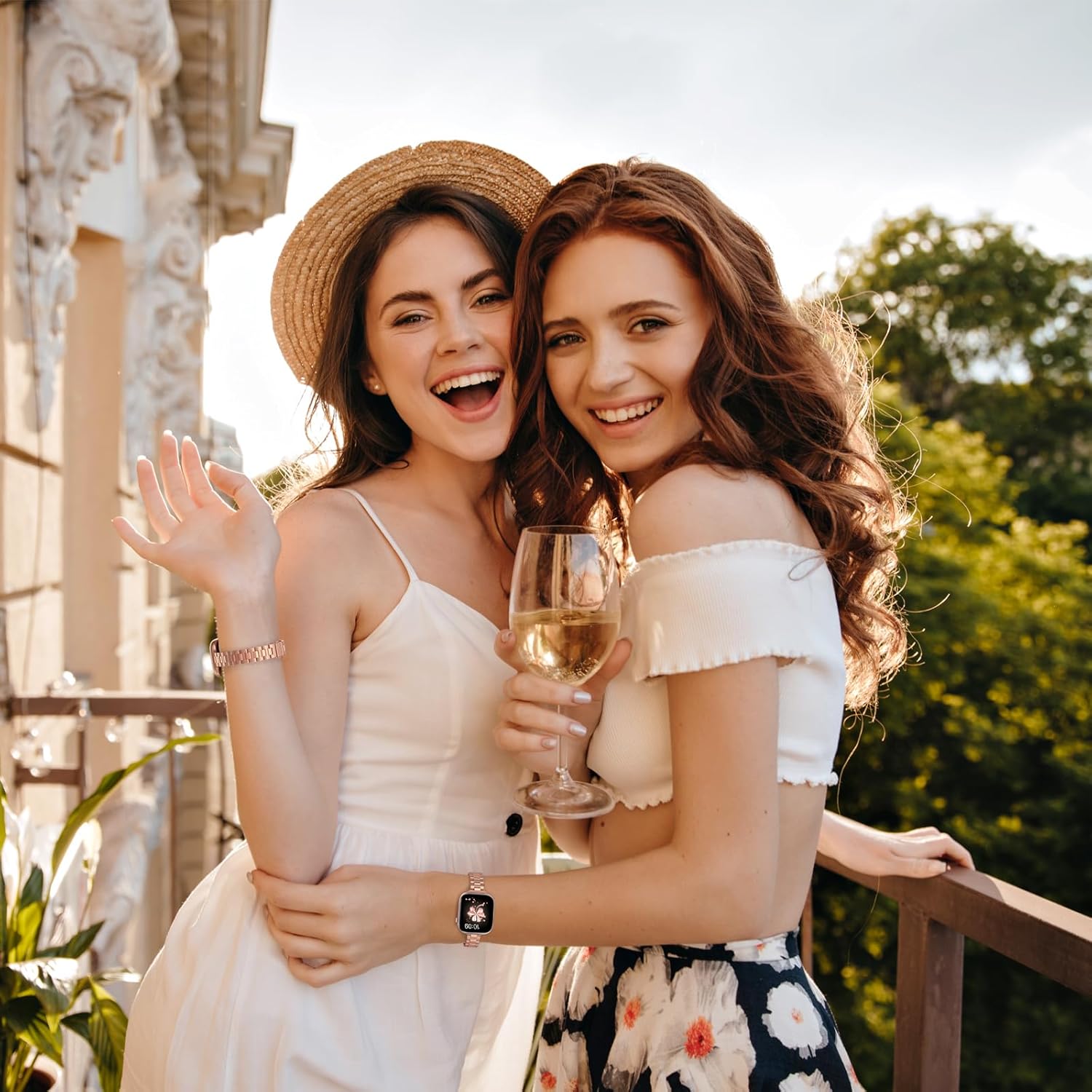 【Premium Stainless Steel】: This stylish metal apple watch band women crafted from premium, finely polished stainless steel, this stylish women's Apple Watch band offers luxurious comfort and lasting durability. Its exquisite gold finish and skin-friendly surface add sophistication, ensuring you receive compliments.