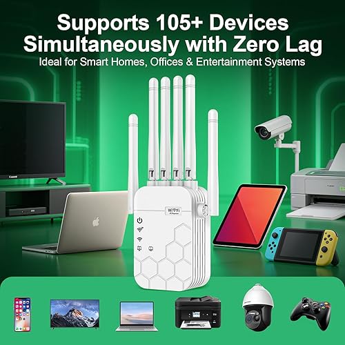 Comment on "WiFi Extender Signal Booster for Home, New 6X Faster Wireless WiFi Repeater with Ethernet Port, AC1900Mbps Dual Band, Covers up to 12880 sq.ft & 105 Devices, WiFi Booster Compatible with All Routers(White)"