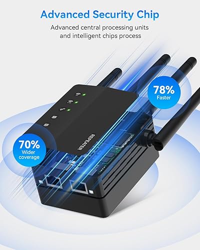 Incredible High Internet Speed: Dual-band 5G and 2.4 GHz technology powered by an advanced core CPU boosts your long-distance Internet speeds up to 1200 Mbps.This wifi booster keeps you away from weak networks, meets your needs for streaming, gaming and work, and provides you with a superior Internet experience!