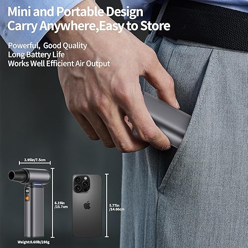 【Cordless air duster Electric】Air blower Cordless is lightweight only 0.6lb and easy to carry. Mini air gun blower is convenient for handheld use,versatile for electronics and various purposes,making it ideal for indoor cleaning,outdoor adventures,travel,and camping.Air blower duster is a sustainable and cost-saving cleaning tool to single use electric compressed air duster,pc cleaning kit,compressed air for pc,air duster for computer,electronic air duster,car detailing air blower,computer duster
