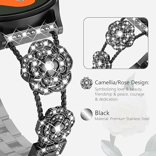 Luxury Camellia/Rose Design: The luxury galaxy watch 8 band features Camellia/Rose design, forever blooming camellia symbolizing love and beauty, friendship and peace, courage and dedication. This samsung galaxy watch 8/ 8 Classic band uses diamond-encrusted craftsmanship, revealing dignity and elegance in luxury. The perfect combination of personality and style, you'll get lots of compliments.