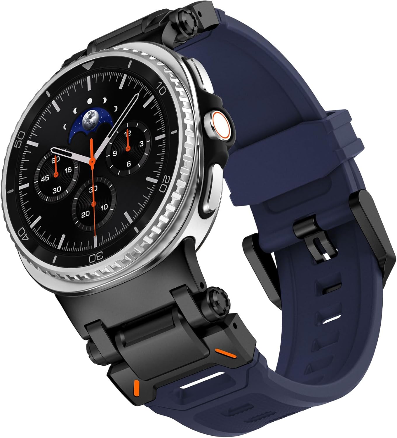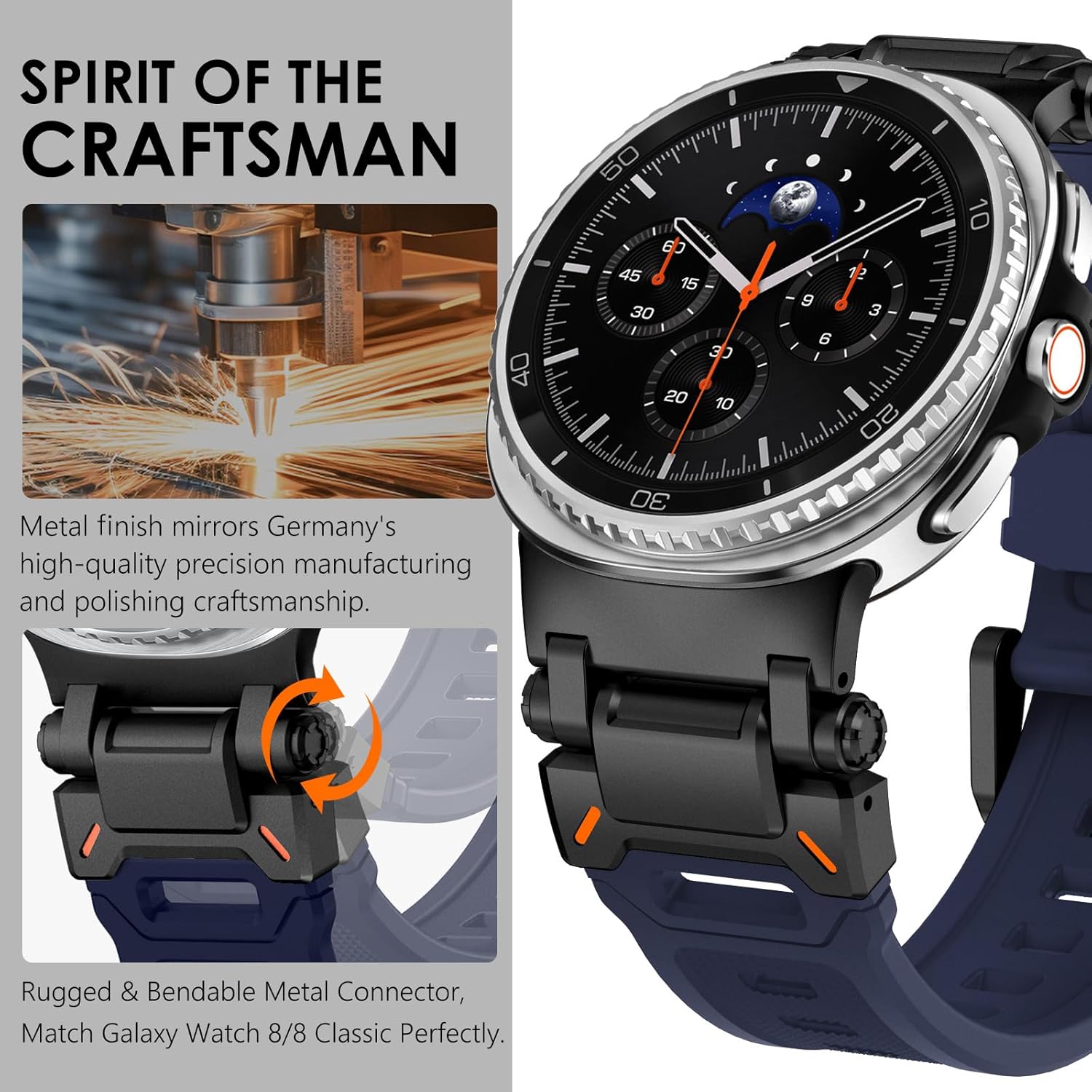 【Match Made for Galaxy Watch Ultra】Rugged yet sleek metal connectors features bolder look and orange accents to complement your Galaxy Ultra Watch. 26mm ultra wide and 3mm thick galaxy watch ultra band with metal adapter takes on a rugged look to accent your boldness, it's the ultimate answer to showcase your toughness and rugged charm.