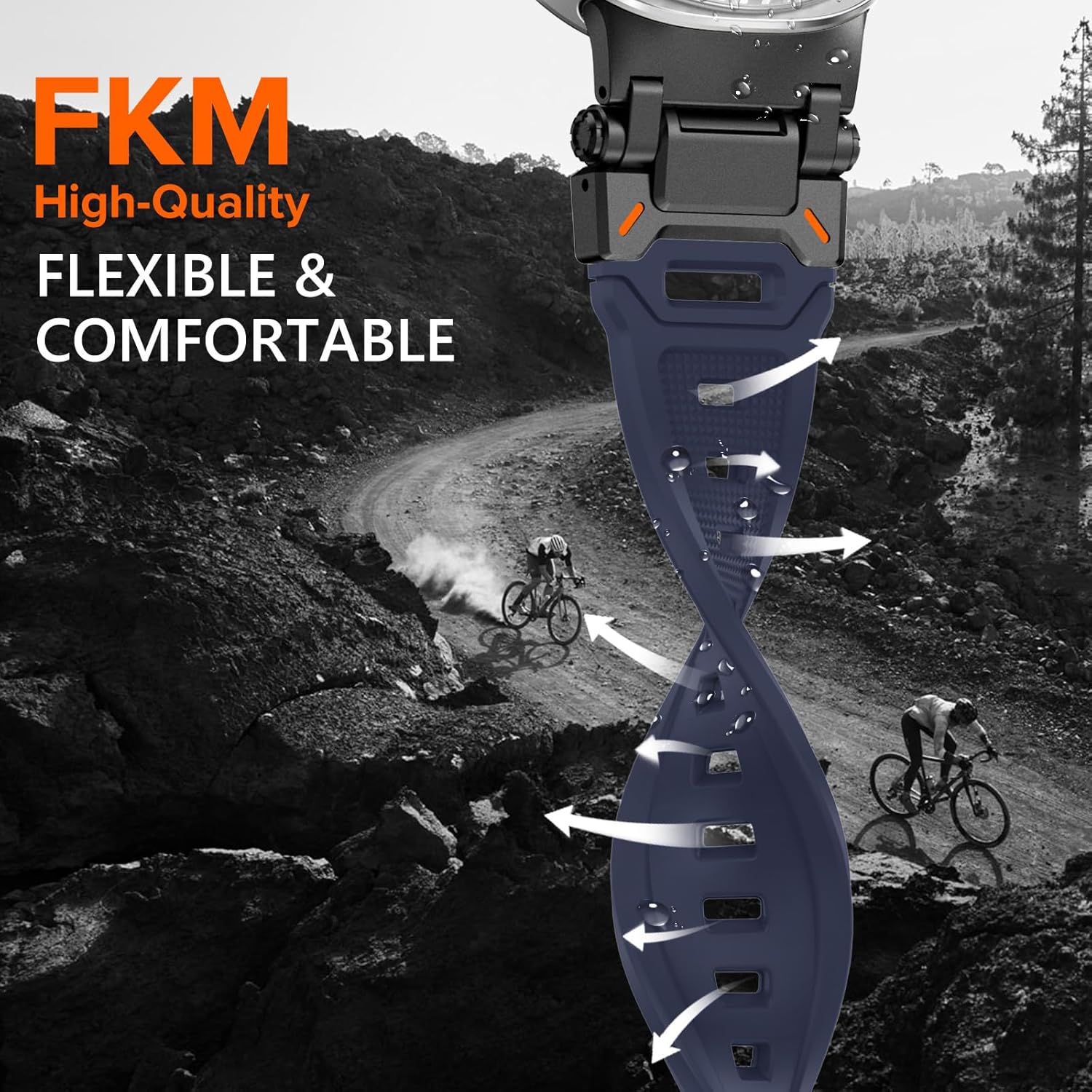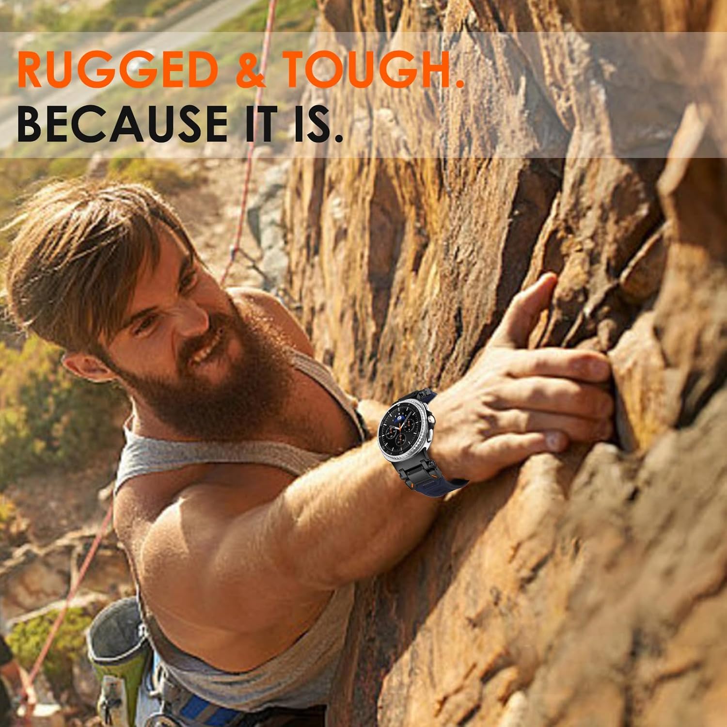 【Rugged Sport Rubber Bands】Engineered for Adventure. Unibody Samsung Galaxy Ultra band is crafted from high-quality FKM (Fluoroelastomer) rubber with durable 316L stainless steel metal connectors for durability and all day comfort. Two joints of metal connector and the connection of metal connector and silicone rubber strap are bendable to fit your wrist better.