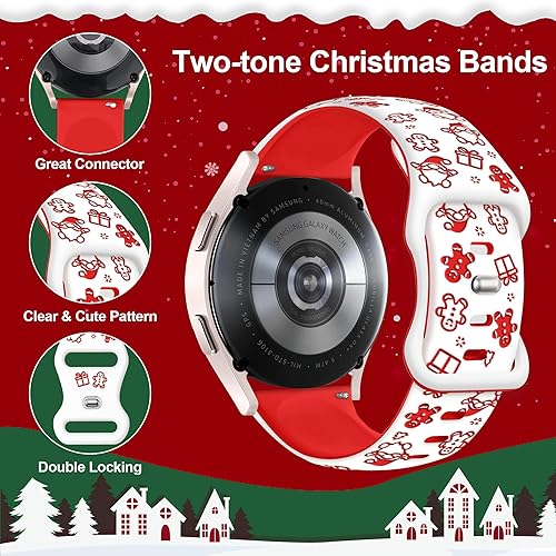 wipalor Christmas Galaxy Watch 7 6 5 4 FE 40mm 44mm Bands for Samsung Watch Bands, Christmas 20mm Watch Band Women Men Galaxy Watch Bands for Samsung Watch Bands 6 4 Classic/5 Pro/Active 2-White/Red(Christmas 2,20mm)