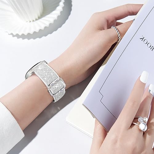 wipalor Galaxy Watch 8 Band 40mm 44mm for Samsung Watch Bands, Galaxy Watch 8 Classic Band Women Bling Sparkly Stretchy Nylon for Samsung Watch 44mm 46mm(Silver,Galaxy Watch 8 / 8 Classic)