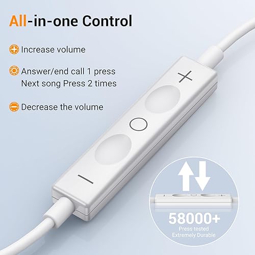 Premium Sound Quality:Engineered with a 100% copper core for lossless digital audio, these earbuds support 48KHz/24-bit high-resolution sound, immersing you in crisp, dynamic music. The built-in noise-filtering microphone ensures crystal-clear calls—perfect for meetings, language practice, or chats. The multifunction remote lets you play/pause music, skip tracks, and manage calls effortlessly