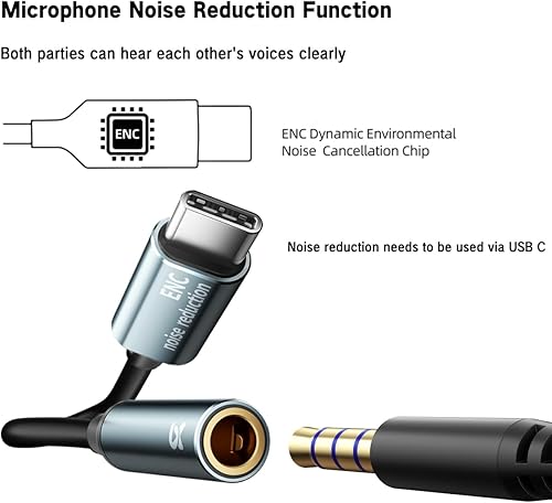 NOISE REDUCTION: The USB-C plug is equipped with an ENC noise-canceling unit. When connected to a 3.5mm wired headphone, it provides a call noise-canceling microphone function, which can filter out background noise during calls. Meanwhile, the headphone comes with large, medium, and small (L/M/S) sizes of sound-isolating ear tips, offering physical noise-canceling effects.