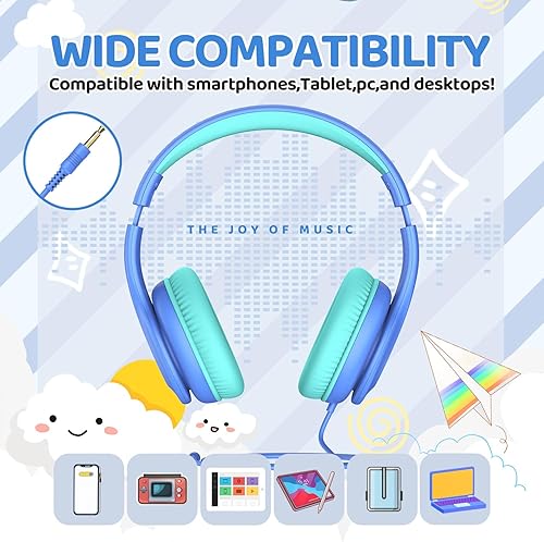 Extensive Compatibility: JoySpark kids headphones with cord are universally compatible with most 3.5mm plug-enabled devices. Simply plug in and enjoy hassle-free connectivity with smartphones, PCs, laptops, tablets, and more.
