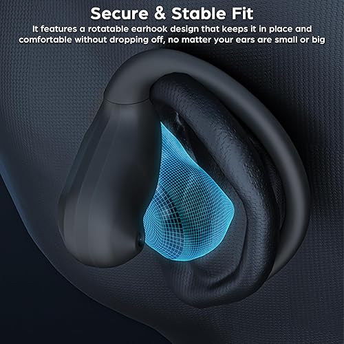 Secure & Stable Fit - Open-ear and ergonomic design with rotatable ear hooks, 35g ultra lightweight, let earphones unrivalled comfortable and hardly noticeable, and always keep its place & comfort without dropping off like wireless earbuds, no matter your ears are small or big, you are shaking heads or chewing.