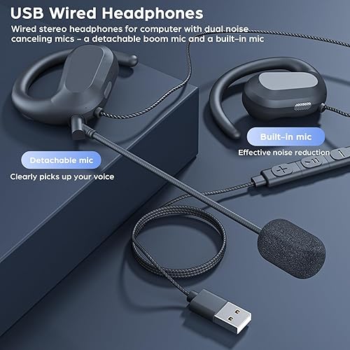 Dual Noise Canceling Mics for Calls Smooth and Clear - Wired stereo headset with dual noise canceling mics (a detachable boom mic and a built-in mic), professional-grade noise-cancelling chip picks up your voice and blocks out surrounding noise, ensuring your open ear headphones voice comes through with clarity, making every conversation effortless and enjoyable.