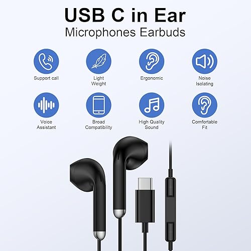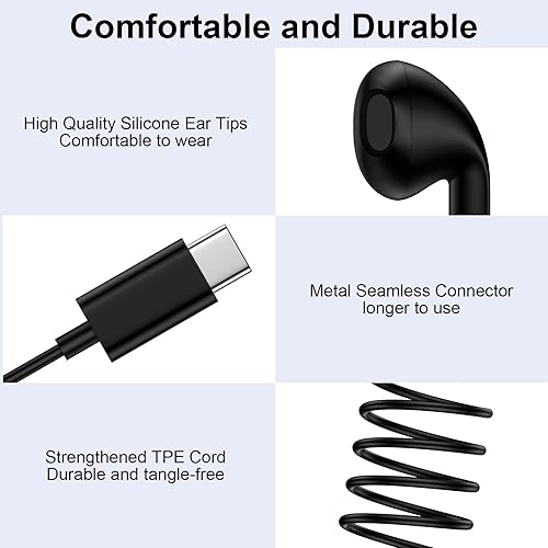 【Compatibility】Wired Earbuds USB C Earphones compatible for Samsung Galaxy S25 FE S25 Ultra S25 Edge S25 Plus S25+ S24 Plus S24 FE S24 Ultra S23 FE S23 Ultra S22 S21 S20, A17 5G A16 A36 A56 A26 A06 A15 A25 A54 A14 A35 A55 A53 A13 A03s A24 A23 A04s A05 Z Fold 7 SE 6 5 Z Flip 7 6 5,Note 20 10; iPhone 17 Pro Max/Air/17 Pro/17/16 Pro Max/16e/16 Plus/16/16 Pro/15/15 Pro Max/15 Plus/15 Pro;Google Pixel 10 Pro XL,10 Pro Fold,10,9a,9 Pro XL,9 Pro Fold,9 Pro,9,8a,8 Pro,8,7a,7 Pro,6Pro,6a,5 XL,4a XL,3.