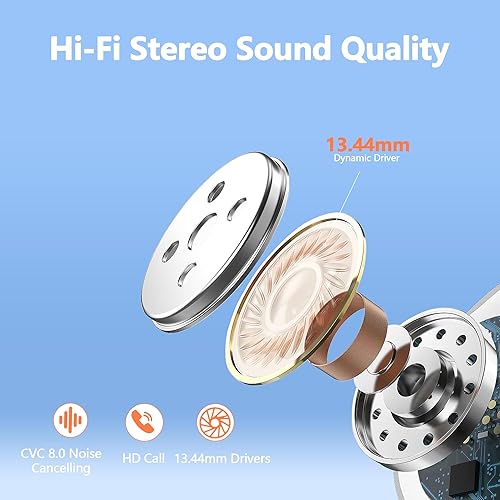 HIGH FIDUCIENT SOUND QUALITY AND ENC CLEAR CALLS: With 13 mm dual-layer graphene diaphragm drivers and equipped with hybrid ENC noise cancellation and Hi-Fi technology, Q22 bluetooth earbuds unique bass enhancement algorithms feature powerful bass and pristine sound, for a breathtaking sound experience that is as immersive as it is acoustic; Equipped with a high-quality ENC noise-cancelling microphone that passively eliminates 90% of background noise, you can enjoy a first-class call experience wherever you are