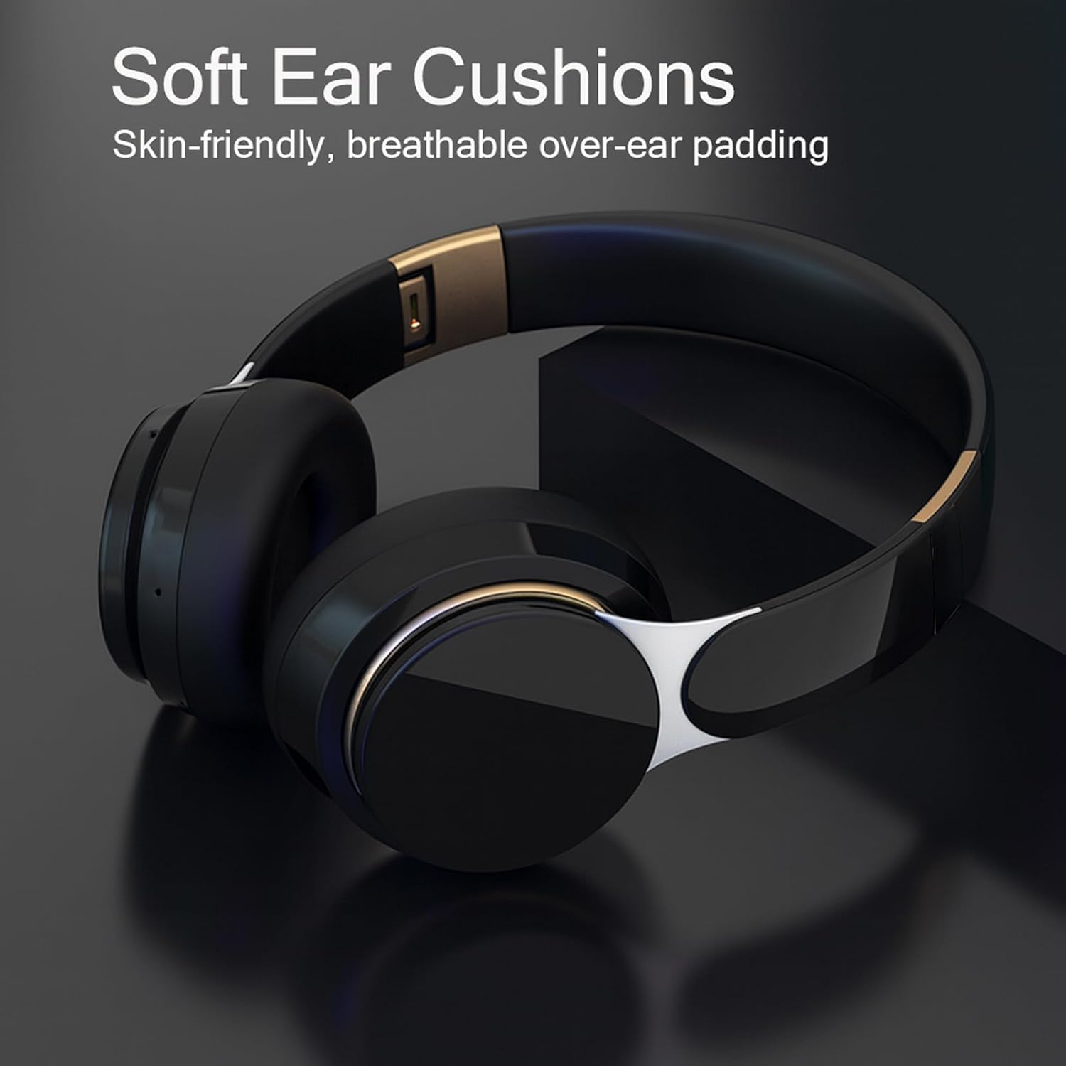 Wireless Bluetooth Headphones Over-Ear Foldable Headset – HiFi Stereo, Deep Bass, Portable Wireless Headphones with Hidden Mic for Travel, Office & Home (White)(Black)