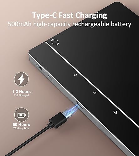 Sleek, Spacious & Ergonomic Design: A smooth 6.4-inch glass surface paired with a slim metal body (6.4" x 4.8" x 0.4") offers premium comfort and effortless control for all-day use.
