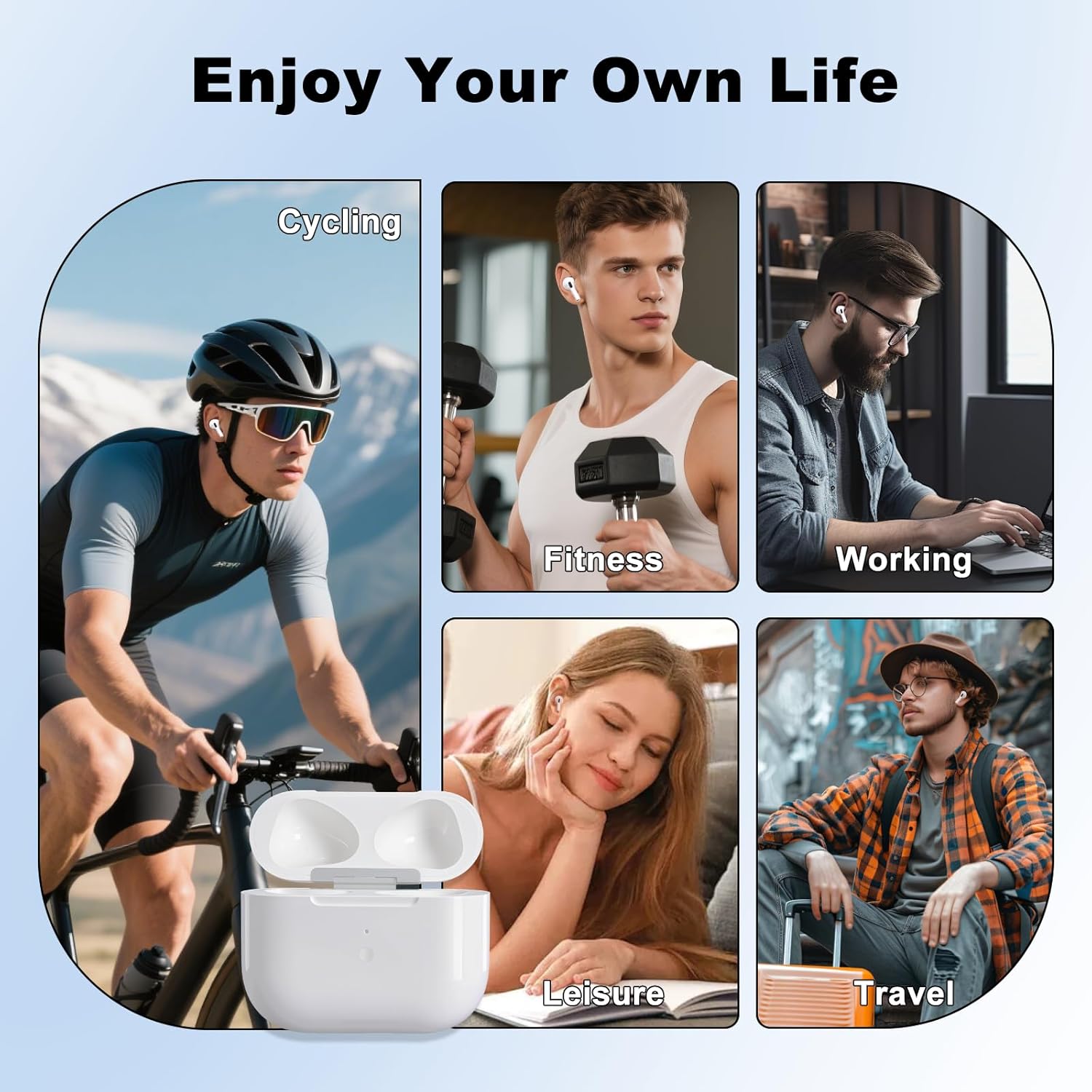 【Fast Charging & Extended Listening Time】 The charging case provides quick charging for your earbuds. Just 5 minutes of charge delivers 1 hour of listening, while a full charge takes approximately 30 minutes. Keep your earbuds powered throughout the day with up to 5 full charges.